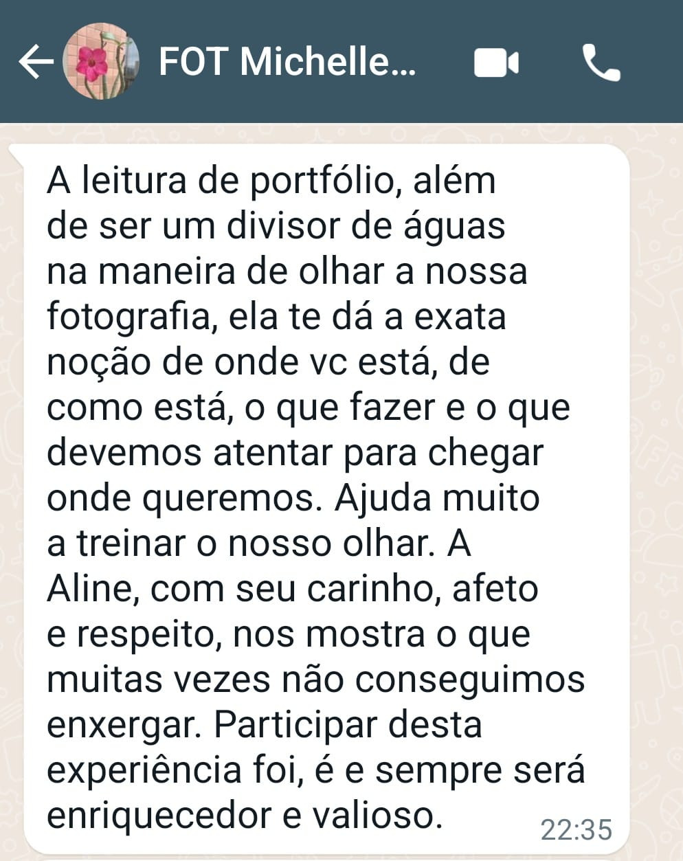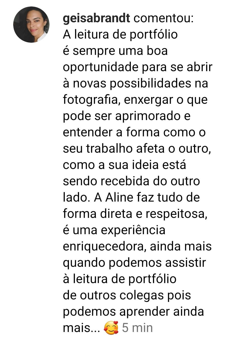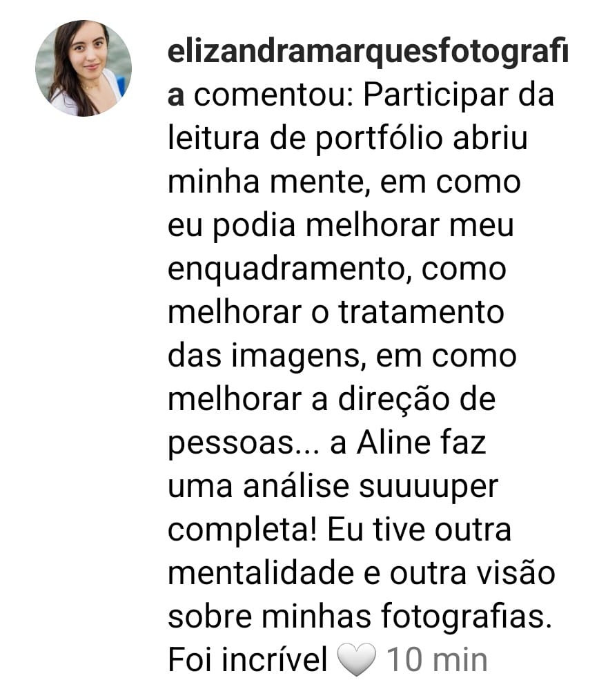 Você não estará na sessão sendo julgada por mim ou por qualquer participante que seja. Será uma oportunida única e exclusiva de você tanto treinar mostrar seu trabalho ao mundo (mesmo que por enquanto para poucas pessoas) quanto de observar e aprender com a leitura das fotografias dos outros participantes da sessão.