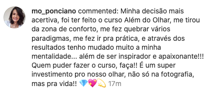 Este é o momento perfeito para transformar tudo o que você já vivenciou na sua carreira. Ao se juntar ao Além do Olhar, você não apenas evoluirá como fotógrafo(a), mas também como ser humano, em um ambiente de comunidade. Aqui, todos estão unidos em torno de valores essenciais como afeto, conexão, empatia e relacionamento. Você nunca estará sozinha(o) nessa jornada!